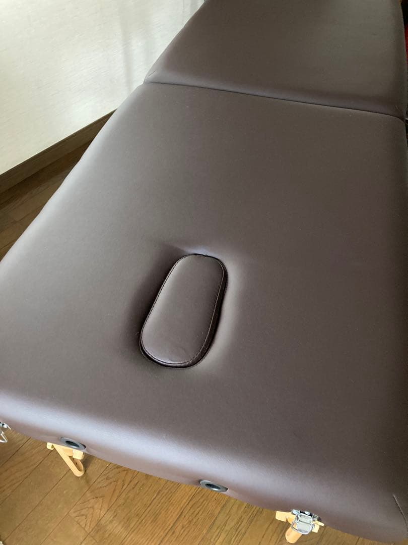 折りたたみ マッサージベッド 木製 有孔 SevenBeauty UU-006キャリーバック付き新品価格 およそ18000円(送料込)角を丸く仕上げた楕円タイプの折りたたみ木製マッサージ/エステベッドです。折りたたみ施術ベッド ホワイト 整骨院整体 エステ マッサージ 施術台。美品 桐の畳めるベッド 桐らくね 桐優 kiyuu 折り畳み式。■サイズ:長さ185cm×幅70cm×高さ52cm〜82cm 重さ:約14kg■カラー:ダークブラウン■クッションの厚み:約5cm■材質:生地/PU、クッション/ウレタン、脚部/木製■機能:高さ10段階調節可能■耐荷重:約250kg数年前に購入しましたが、ほとんど使用していません。付属品は、画像に映っているものが全てです!目立った汚れや傷の少ない美品ですない♪キャリーバックの上から緩衝材で包んでラップで覆ってお送りします!お店の情報