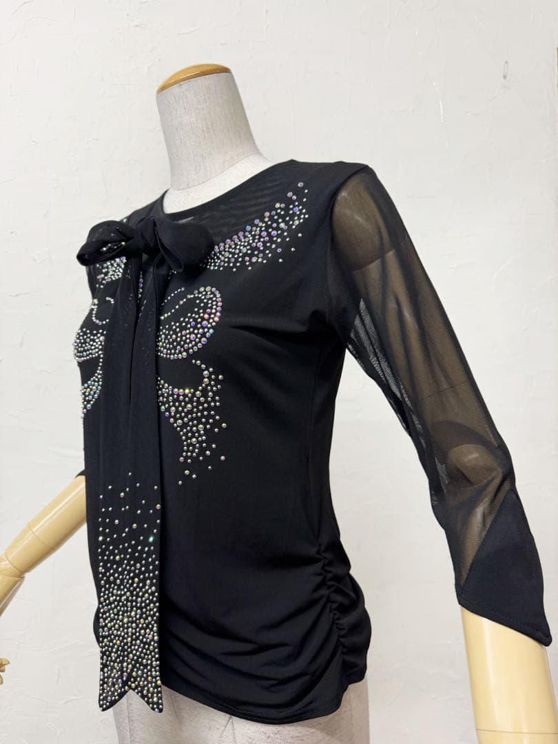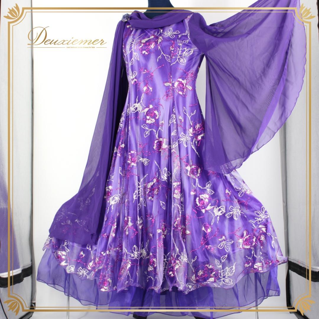 新品 社交ダンス トップス パワーネット パープル フリル ラインストーン